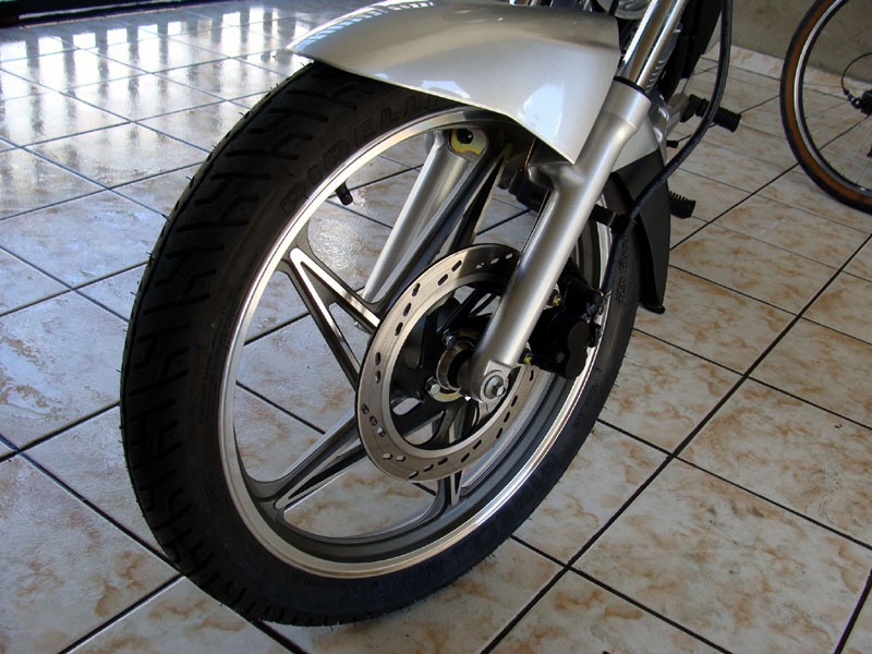 Os freios me surpreenderam! O freio dianteiro a disco é muito bom, o acionamento é bem preciso e ele realmente segura a moto quando é exigido. Eu só achei estranho o reservatório de fluído de freio ser feito de plástico. Não sei o quanto isso afeta a durabilidade dele, mas até agora está tudo certo.