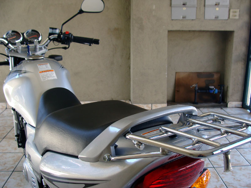A suspensão traseira veio na regulagem mínima (a mais mole), o que fazia com que frequentemente o final de curso fosse atingido. Mas bastou regular a suspensão para o peso correto e o problema foi resolvido. Eu percebi que as bengalas dianteiras também não estão 100% acertadas. Apesar de não ser ruim, pode ficar melhor. Mas ainda não fiz o ajuste, pois este é mais complicado. Teria de abrir as bengalas, sangrar o óleo, lavar as peças e depois montar tudo. Vou deixar para fazer isso na primeira revisão. Os amortecedores são bons e absorvem muito bem as irregularidades do asfalto. Apesar de estar acostumado a suspensão da Falcon, não fiquei decepcionado com a suspensão da Yes.